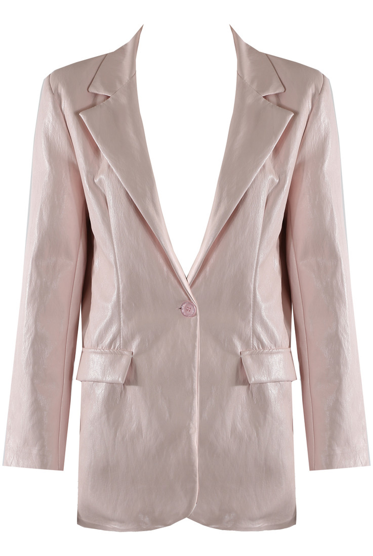 PU Oversized Blazer PU Wet Look Button Up Blazer Long Sleeves Side Pockets Style Number: 45709 Log in for pricing