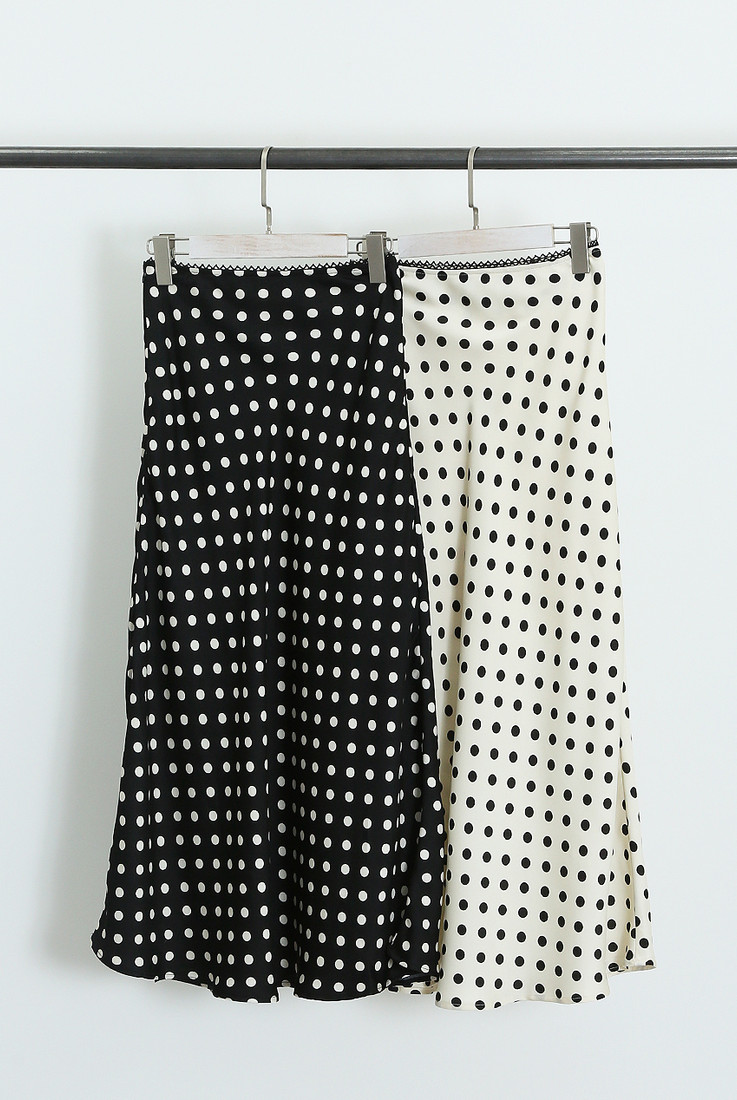 Satin Polka Dots Bias Midi Skirt Polka Dots Pattern Bias Cut Midi Skirt Satin Fabric Style Number: N9667 Available Colours: Black, W… Log in for pricing