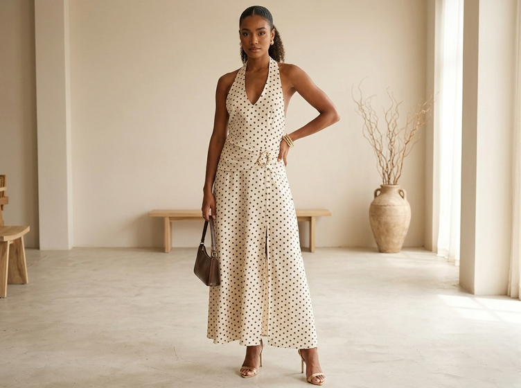 Polka Dot Choker Backless Mini Dress Polka Dots Fabric Choker Neckline Drop Waist Design Ruffle Hemline Backless Mini Dress Style Number: 23… Log in for pricing