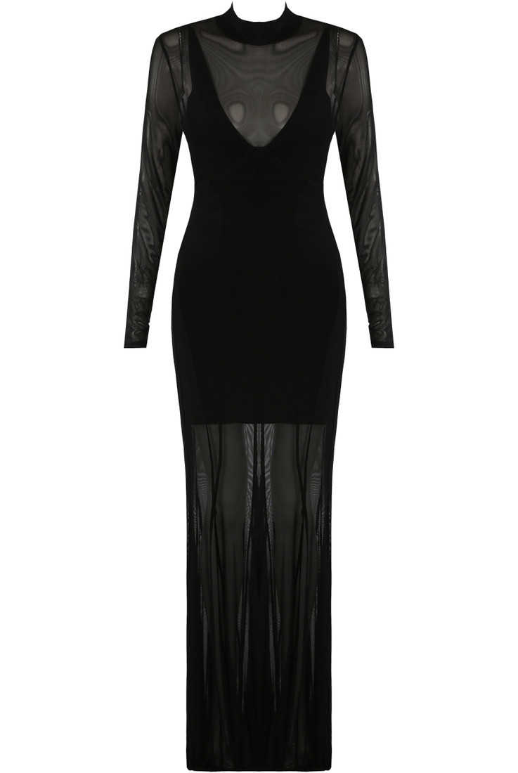 Black Mesh Detail Maxi Dress