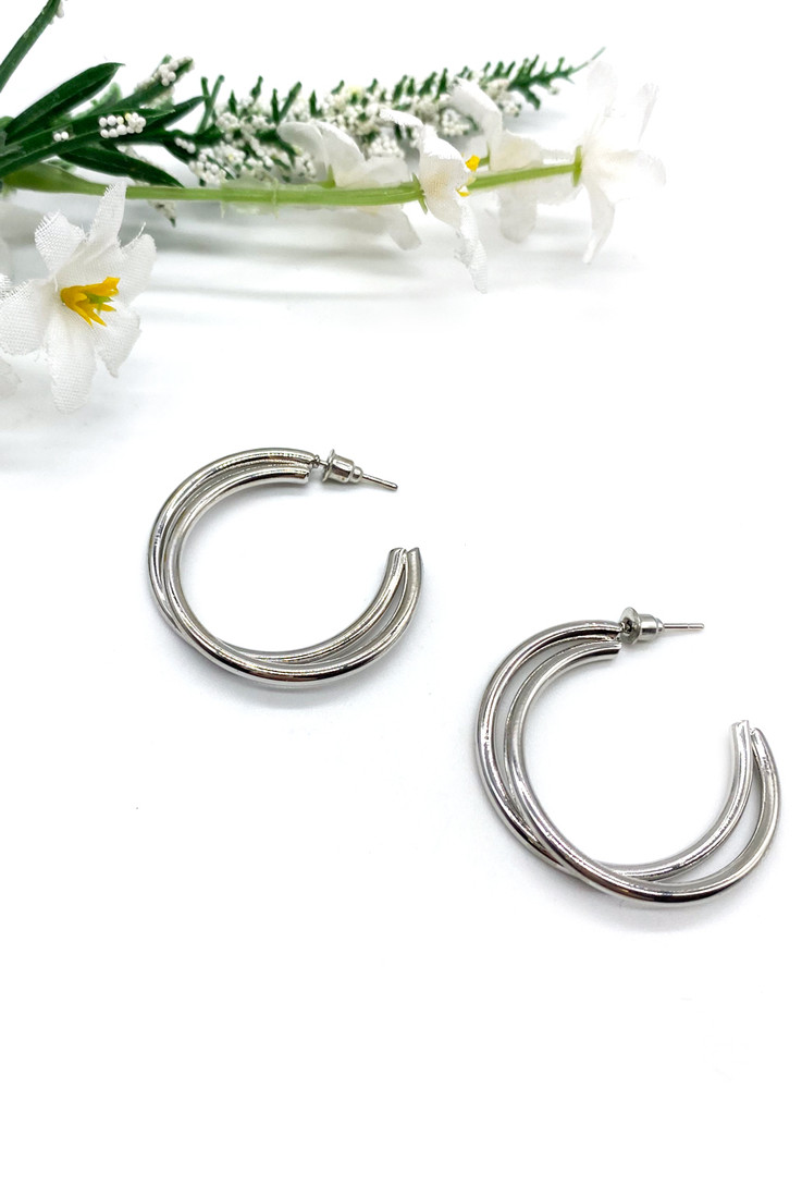 Slim Double Hoop Earrings Pierced Ears Double Hoop Statement Style Number: Jeanne82 Available Colours: Gold, Silver Fabric: Metal… Log in for pricing