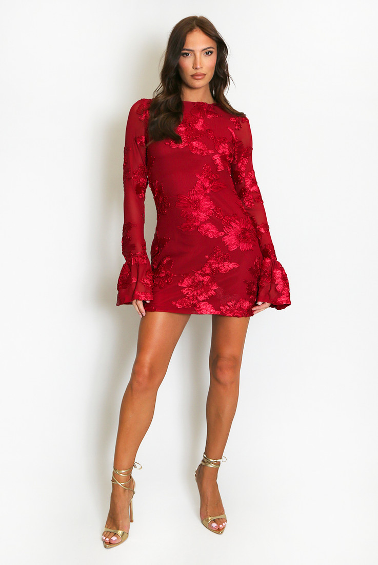 Fluted Cuff Floral Applique Dress Floral Lace Lined Fabric Long Sleeve Fluted Cuff Style Number: 7483 Colour :Burgundy, Brown Fabric:&nbs… Log in for pricing