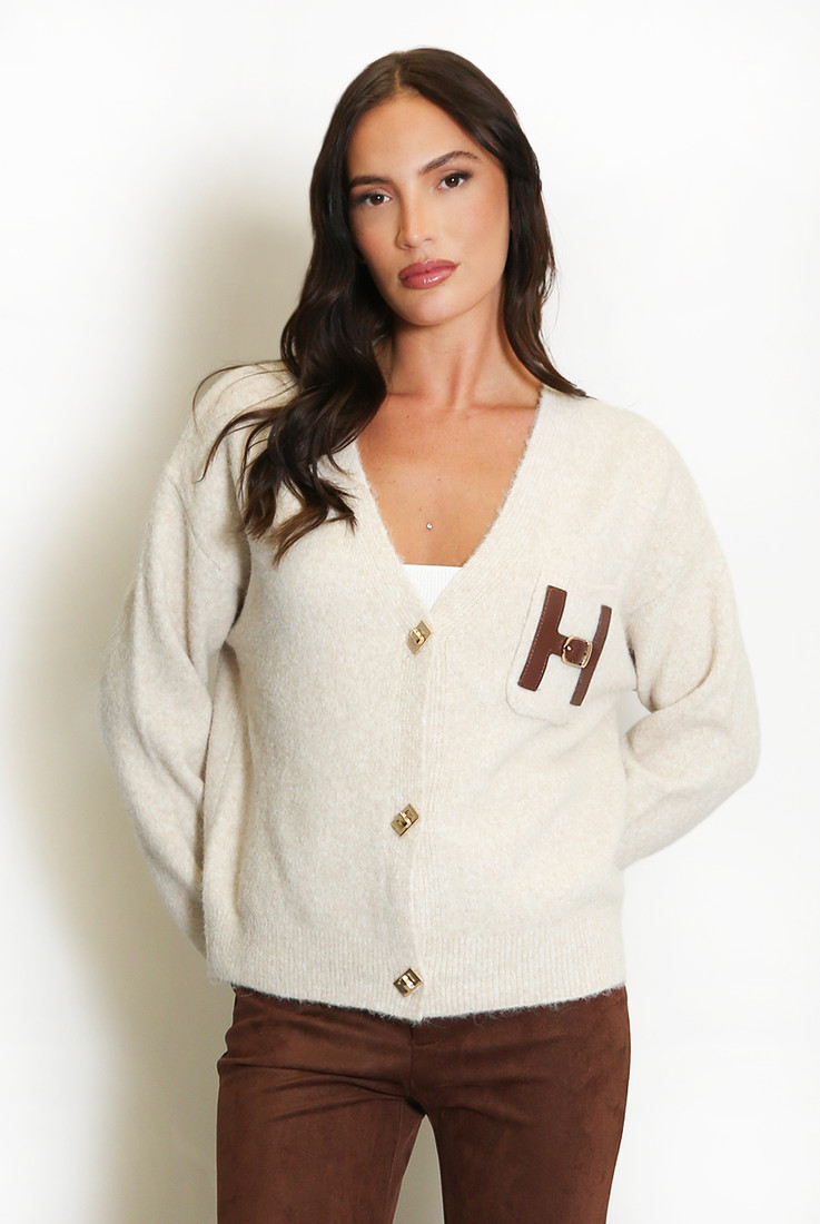 H Motif Wool Blend Cardigan Long Sleeve Button Front Fine Knit H Pocket Motif Style Number : M962 Available Colours : Brown, B… Log in for pricing