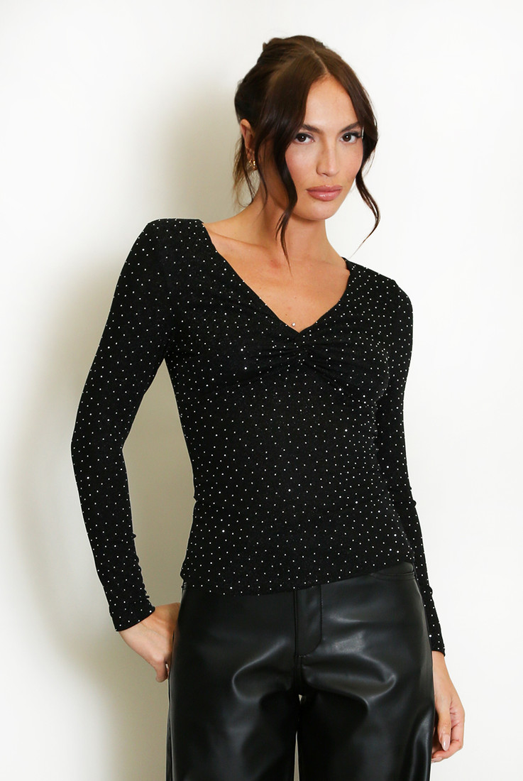 Stud Embellished Gathered Top Lurex Studded Fabric Gathered Front Plunging Neckline Long Sleeves Blouse Style Number : 61939 Ava… Log in for pricing