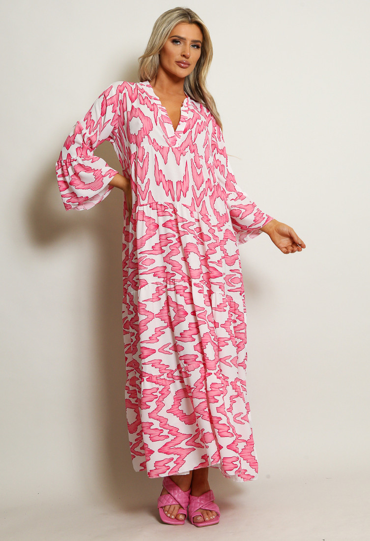 Maxi Smock Dress Printed Fabric Wrap Style 3/4 Sleeve Maxi Dress Style Number : 3896 Available Colours : Cream,Fuchsia,O… Log in for pricing