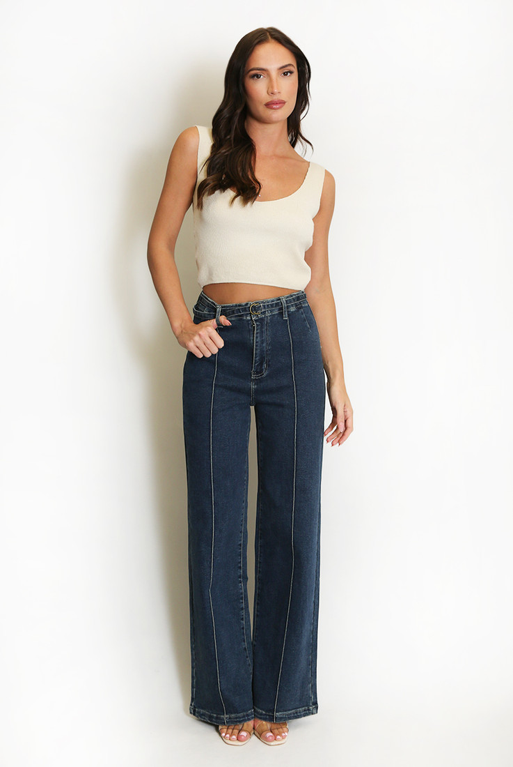 Front Seam Dad Fit Jeans Wide Leg Denim Jeans Front Seam Design Front Button & Zip Closure Thin Matching Belt Style Num… Log in for pricing
